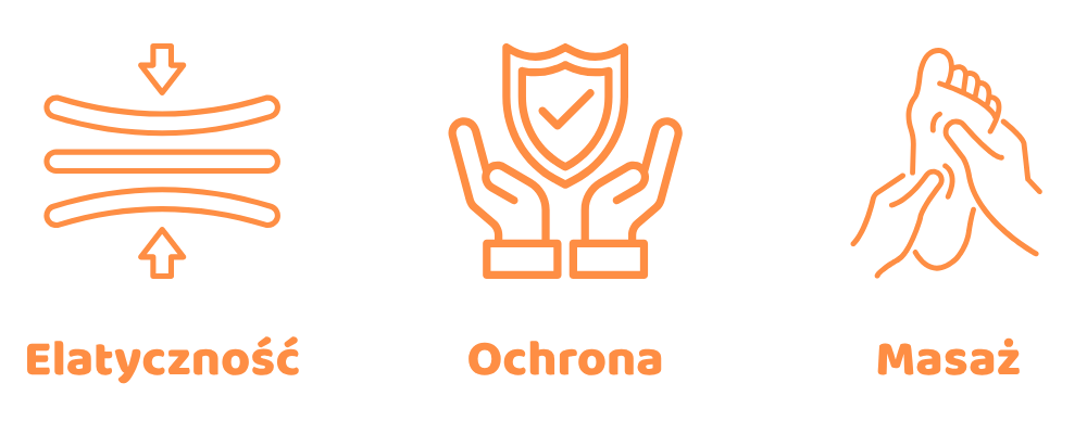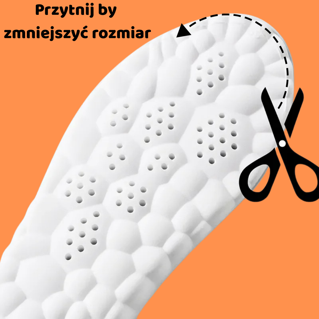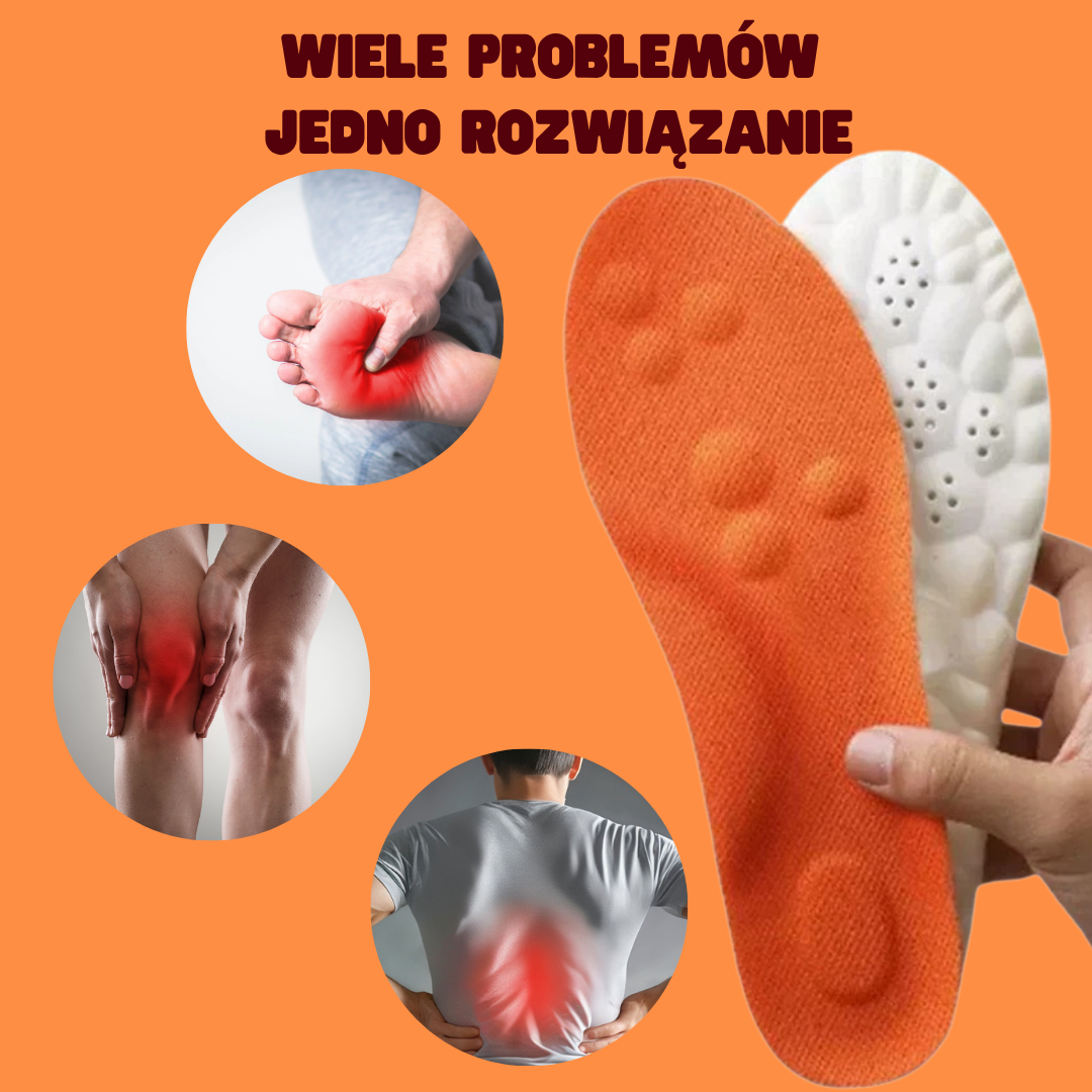 Wkładki mają specjalne wypustki, które stymulują punkty nacisku na stopie. To forma mikromasażu, która poprawia krążenie, zmniejsza zmęczenie i daje uczucie lekkości.